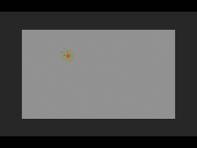 ①在画布中按住Alt+鼠标右键——此时在画布上会出现一个红色的圆点,圆点代表了你笔刷的大小和硬度(越实越硬,越虚越软),拖动鼠标进行左右平移可以调整笔刷的大小,上下拖动可以调整硬度,如下图。