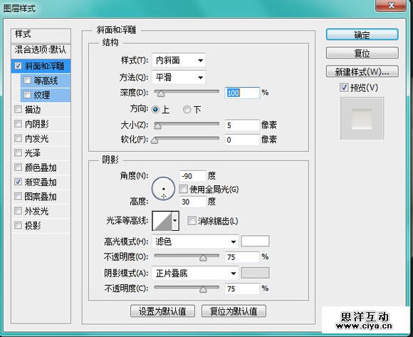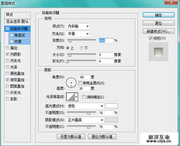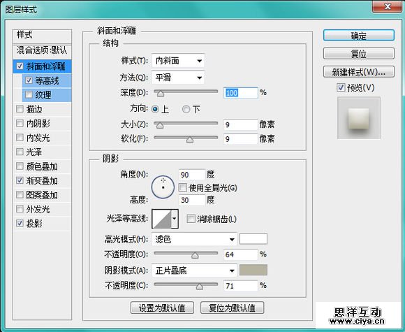 在画布上新建一个正圆,填充白色,然后把圆整成这个样子。【加斜面和浮雕、加内阴影、加渐变】