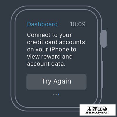 当我们需要用户来完成那些较为复杂的任务时,例如创建账户、获取授权、连接银行数据等等,我们会在显示一条消息,告诉用户接下来的操作需要在iPhone当中进行。当他们打开iPhone时,界面会自动切换到相关的流程当中,继续之前在Watch上中断的步骤。