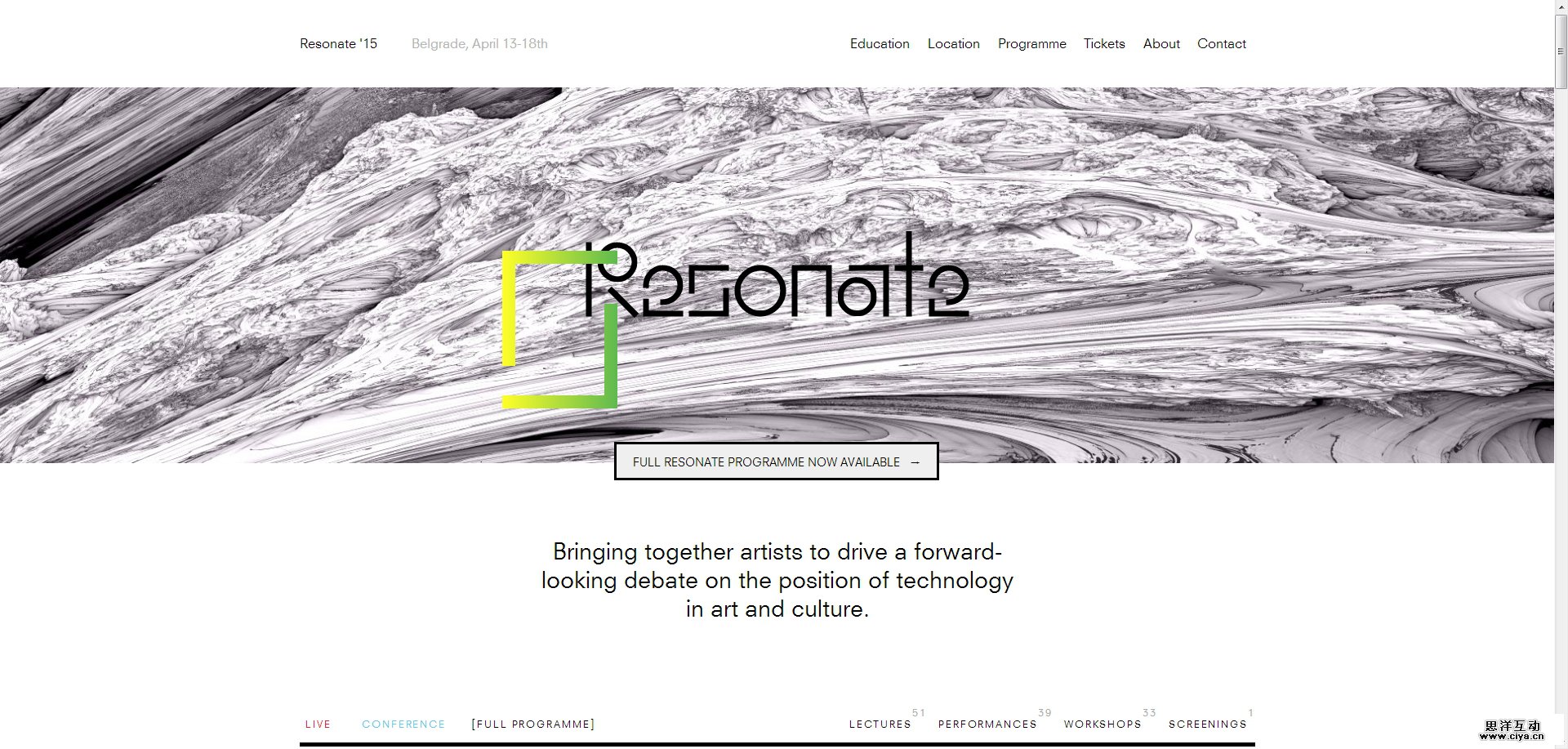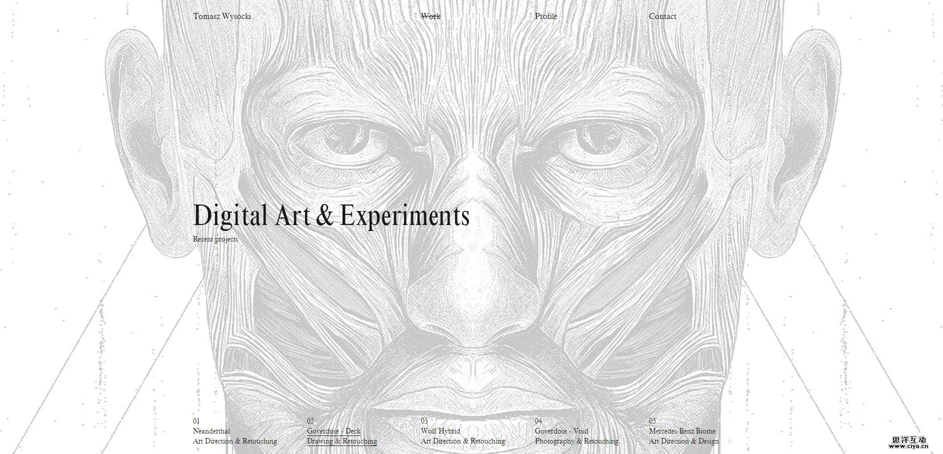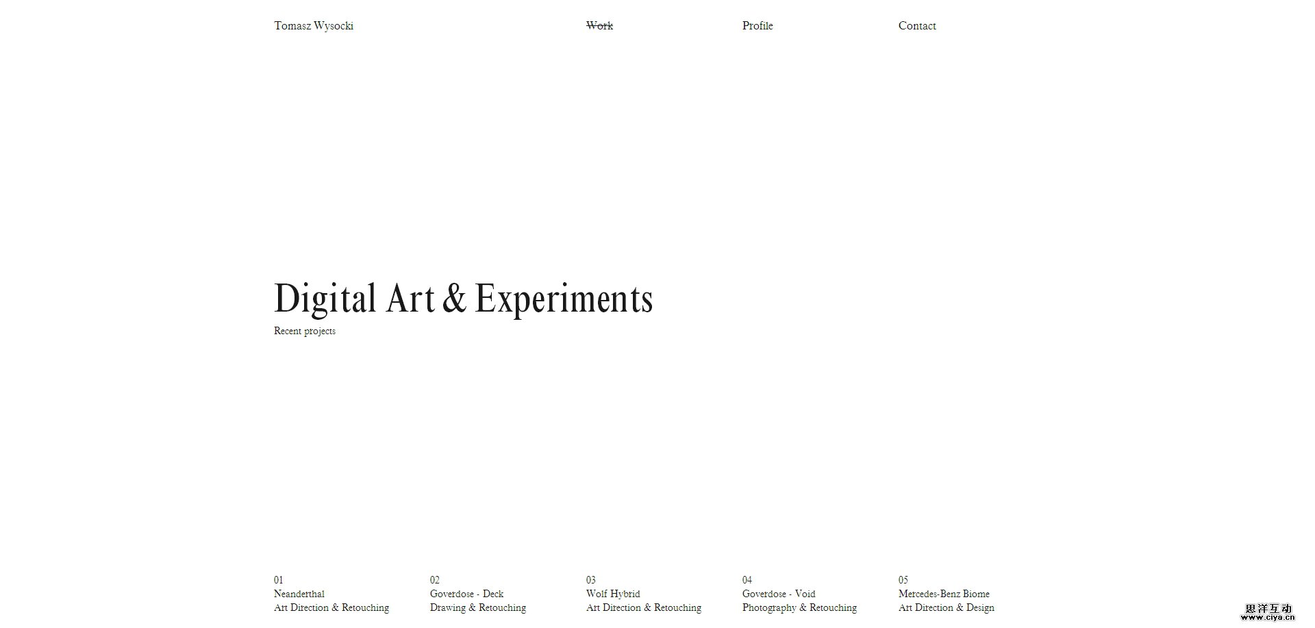 大多数用户首先都会注意到页面标题,也就是“Digital art&Experiments”这句话,而在它外围的则是大面积的留白,这样就使得用户的注意力完全集中于此。