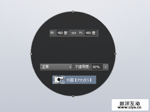 画一个480*480像素的圆,将圆的不透明度更改为80%。