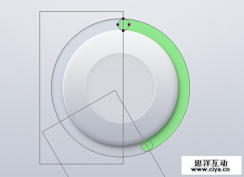 我们复制一下最底层的那个外圆图层,放置在外圆顶层,其余图层下层,我们把颜色改成绿色,看了直观一些,方便操作。