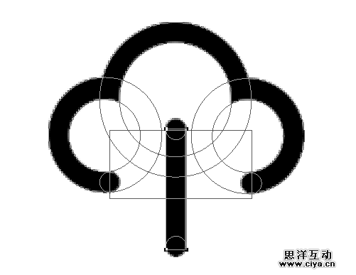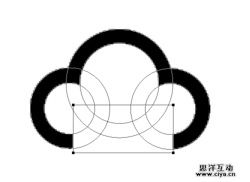 最后,再画两个圆,移动到那两个旋转45度的矩形的位置。