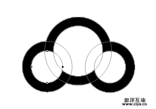 这里需要注意的是如何保证圆环的宽度是一致的,其实有个很简单的方法,网格。我们可以利用网格来对齐,保证我们所画的各个线条的大小是一致的。从我们下图中网格的显示,可以很清楚的看出,我们的宽度已经保持了一致。
