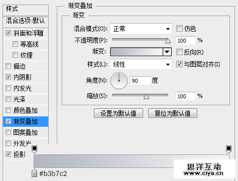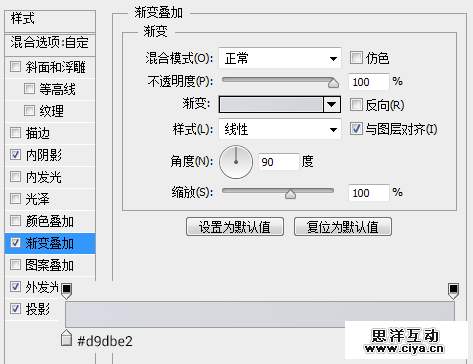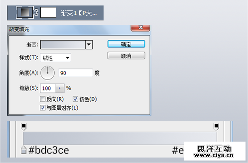 新建文档,我用的大小是1500*1000像素,透明背景。 创建一个“渐变”调整层,设置一个#bdc3ce到#e7e9ee的90度的线性渐变。