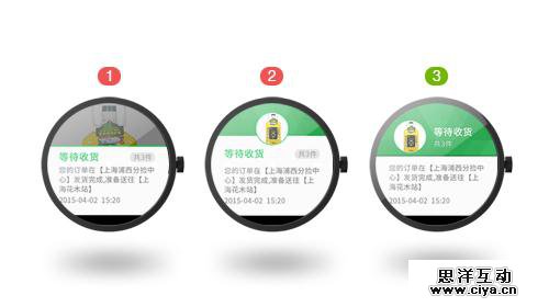 用户被动使用场景:Watch作为穿戴设备上最好的体验是当用户需要的时候对应的内容刚好就显示在上面,让用户能够在做饭、吃东西、跑步、闲聊的过程中使用,也就是用户在一个场景下收到一个恰当的信息。如:快到家时,Watch震动了一下,抬起手腕一看:快递员出发了。