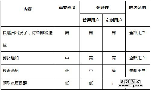 我们对京东现有的消息按照用重要程度和用户相关性两个维度重新梳理,并将用户划分成普通用户和定制用户。将重要信息推送到所有用户的Watch上。对于已订阅了“提醒签到”“优惠促销”等信息的定制用户推送更多消息。