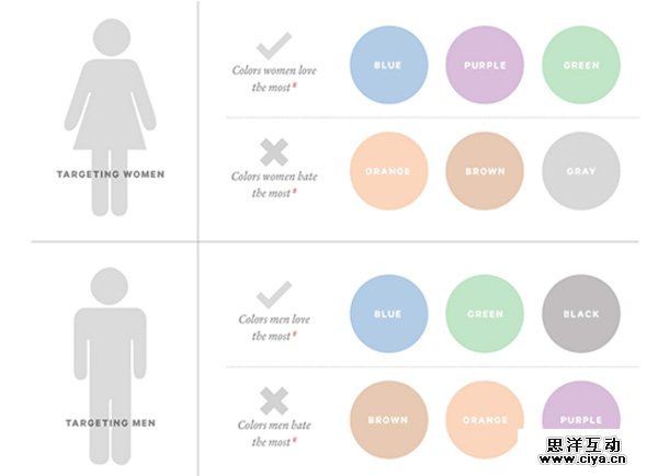 在女性用户这边,橙色也是相对不那么受欢迎的色彩,所以,如果你的客户是女性的话,尽量避免这一点。