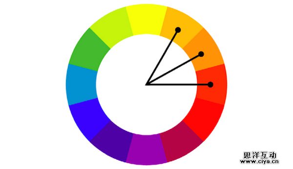 这种配色的核心是选取连续的相邻互补色,如果你想借此来取悦用户的话,在选取的时候一定要谨慎小心。这种配色方式能够突出色彩的活力,但是因为相辅相成,色彩和效果对比不会那么强烈,但是会更加夸张。
