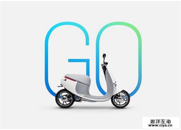 巨大的Go,配色开朗活泼,渐变和鲜亮充分展现了设计的现代性。很重要的一点是,蓝色是男性和女性都非常喜欢的色彩,这一点使得网站是不针对性别进行区别的。灰色还带有克制和环保的特性,结合电动车小巧的设计,整个设计还在暗示产品的环保和安全的特性。