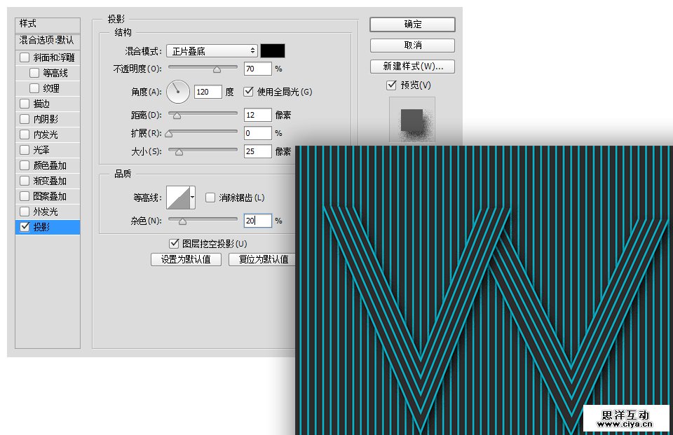 在此我增添一点杂色效果的投影,目的是为了渲染一种更加逼真的气氛。对于造型的左右两个V,要确定好他们的叠放层次。
