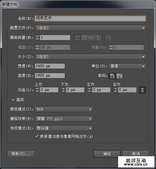 打开AI软件,新建一个文档,文档大小设置为1400*1900px。