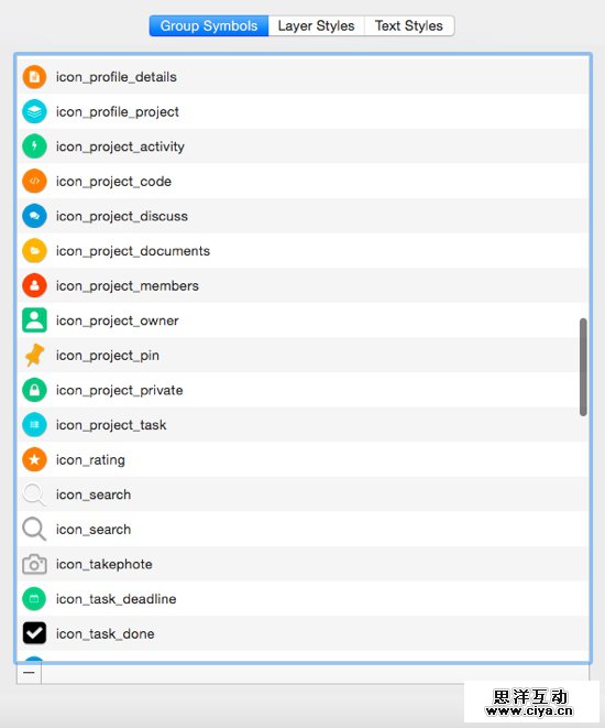 对于经常用到的组件如 icon、分割线、按钮等,使用 Symbol 和字体样式进行统一管理,并且把它们罗列在 Style Guide 中,一方面便于查找,另一方面切图的时候只要输出一份就可以了。如下图所示: