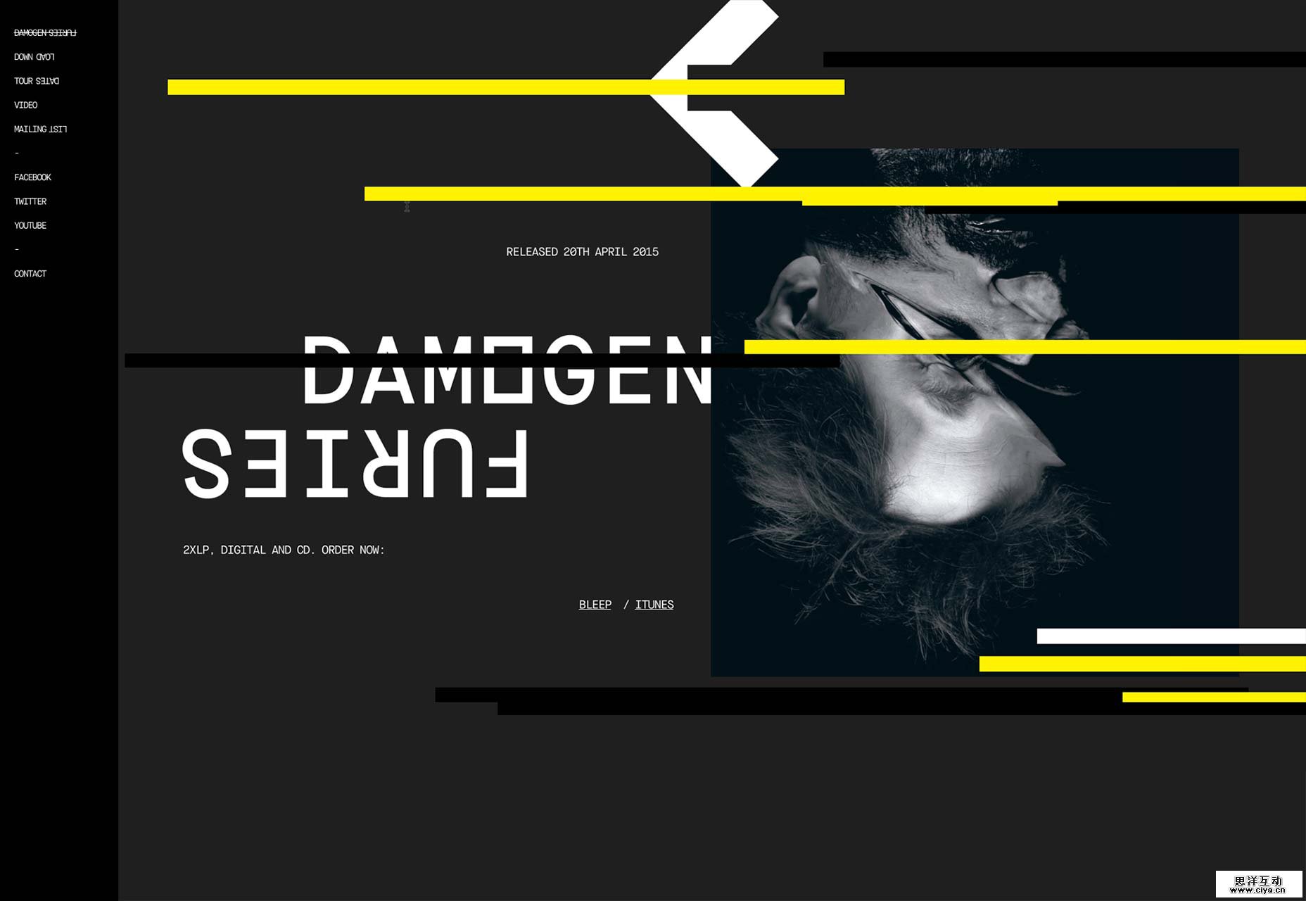 当然,你还可以在Squarepusher 的网站看到相对不同寻常一些的纵向菜单设计。导航被设计成标签页,访客可以通过滚动切换,这是一种更为线性的导航栏设计。