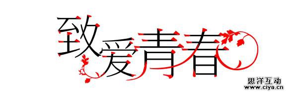 “致爱青春”是之前致青春电影刚出来时,一块游戏的活动slogan。避免统一原版字体,我这里选了极细的衬线体做原型。然后在“爱”“春”的左右添加了树叶,体现清晰、青春、校园的味道。