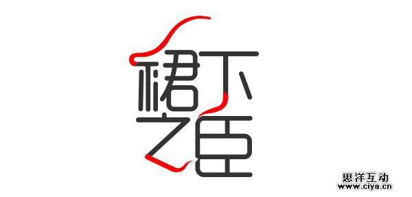 “裙下之臣”是之前做的一个游戏专题标题设计,看字体和名字就是女性类的。联想起妖媚的女性,选取了比较偏细风格的字体做变形,结合裙子,飘逸、起舞的造型对“裙”“之”“下”字的笔画做了重复和类比的装饰处理。