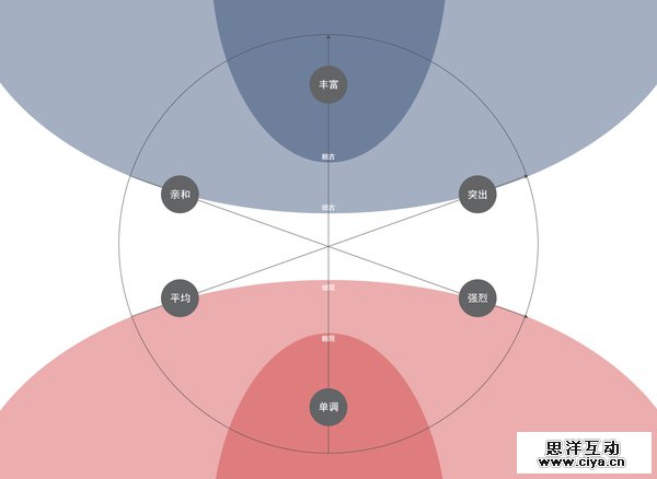 于是我总结这些文章的观点,我重新设计了一个色彩的组合模型,用来描述多个色彩组合的视觉心理效果,见下图: