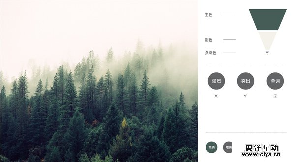 最后的例子,是关于形状的颜色和透明度设置的一个示范。由于这张照片的色组属性太过平均,所以我用一个形状压住一个副色调,然后用“粗古”字体压住主色调,将这个色组的“平均”属性转为“突出”。这个例子是想表达:形状图形的色调选择,关键在于你想怎么改变色组的属性,而半透明的设置,可以改变色组的“丰富”属性。