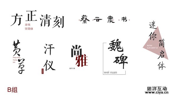 A组的字体组合都被紧密地排列在一个无形的矩形里,在视觉上形成一个面。