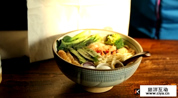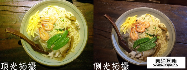 拍美食时,避免使用顶光。要使用侧光,侧光让食物看起来更加有立体感。