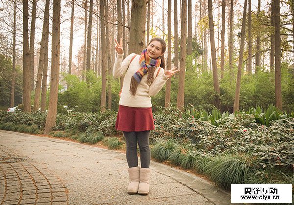 身形显得更加修长,重点自然不在脸上了。这样的构图,使身后的景更加有纵深感。