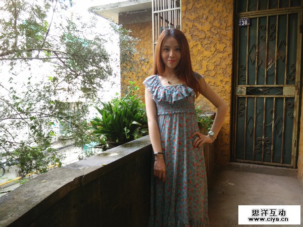 建议让妹子坐在楼梯上,然后蹲下来从侧面拍摄。让扶手作前景,利用扶手的形状特点拍出复古的照片。示例:
