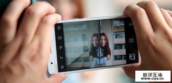 主要在于取景的巧妙上,不能从正面拍摄,错误示例: