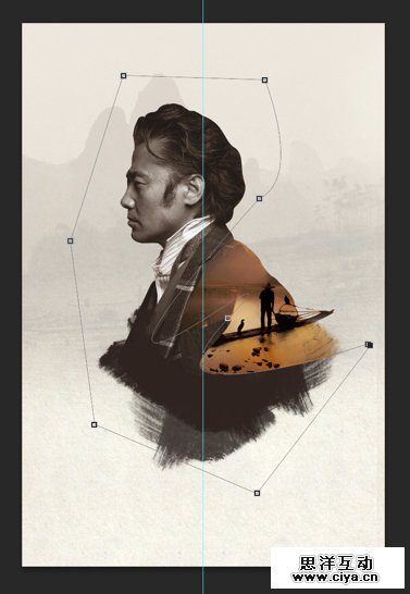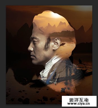 重复第8步和第9步的原理,Ctrl+点击半张帅脸的缩略图,再复制一层风景层,像第9步一样给风景层添加蒙版。