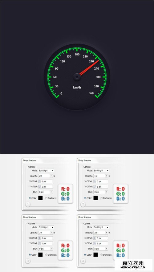 选择”needle”层,如图所示给他添加四层阴影。