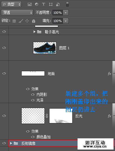 依旧如刚刚(制作鞋子在地面反射的镜像)那样的方法再做一次。