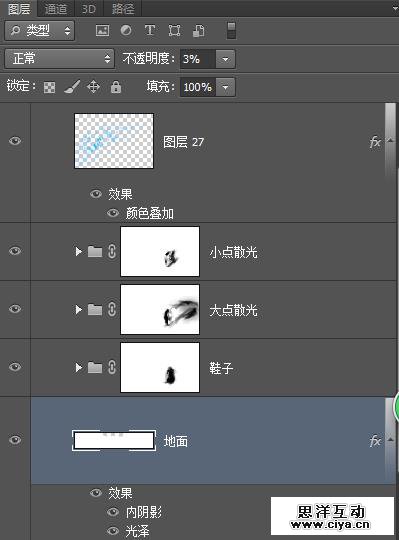 鞋子部分已经处理完了,现在制作荧光分散的效果: