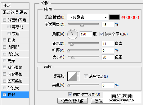 添加一个投影,这里的这个投影的参数需要与前面我们设置文字的投影参数保持一致,确保整体效果是一致的。