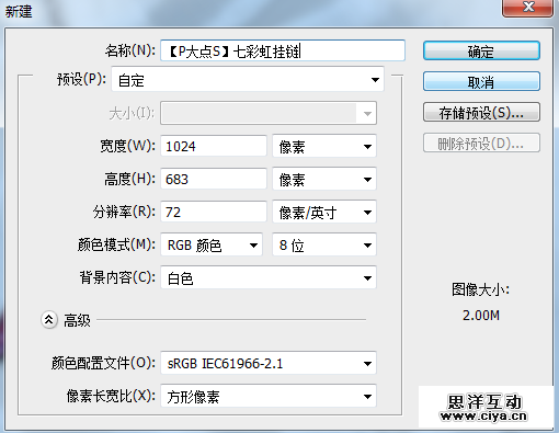 新建个1024*683像素大小的文件,分辨率72,颜色模式RGB 8位。
