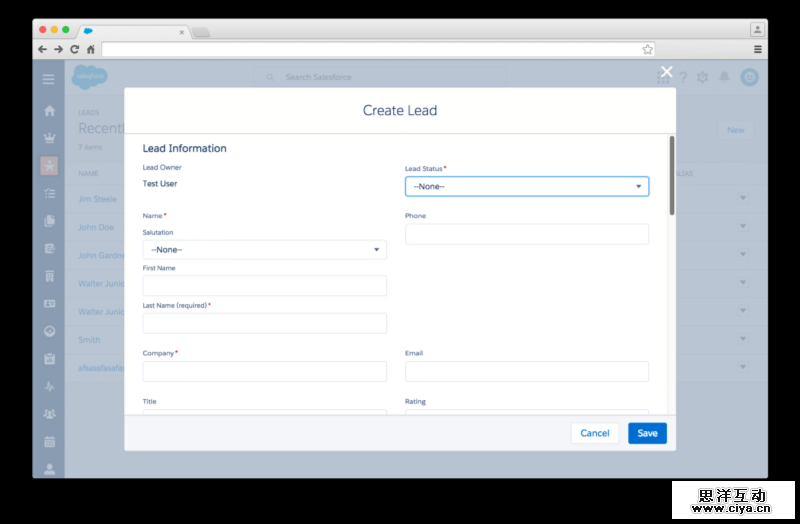 如果你是一名销售人员,你的工作内容可能涉及到同潜在用户进行沟通(也就是“Leads”)。如果你想在Salesforce中跟踪这些潜在用户的信息,那么通常你得先创建一个相应的档案。如果要这么做的话,可能会创建下面的这种Lead 表单: