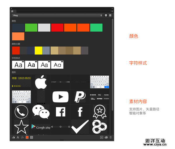 现在很多人应该都在用 CC 的版本了吧,其实这里面有个非常强大的功能(前提是你用的是正版):Creat Cloud库 ,而这个能保存你的一切素材:图片、矢量文件、颜色、字体样式等。