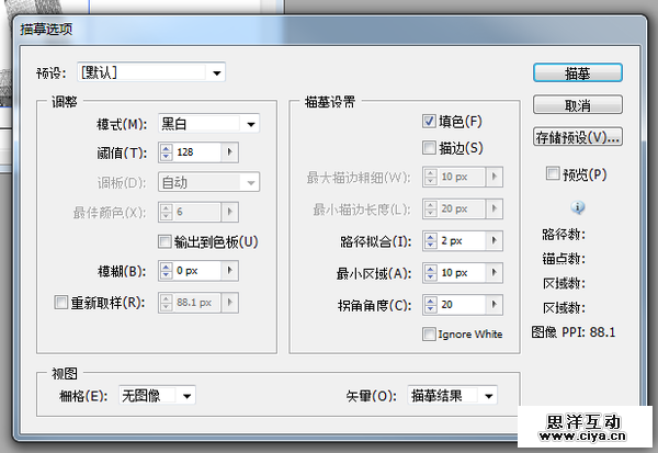 选择最后一个描摹选项,然后多测试一下里面的各种设置组合