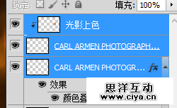 复制一层,略作平移,并把下面的一层填充一个深色调(从照片中最暗的部分取色),营造出厚度感。