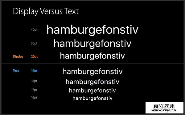 2. 不同字号时候字体选择,大于19pt 选择SF-UI-Display,小于19pt 选择SF-UI-Text