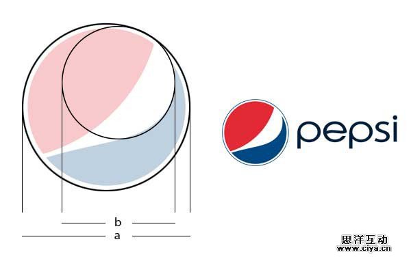 百事的LOGO是使用两个遵循黄金比例的圆圈来构建的,较小圆形并不是显而易见的那种,而是隐藏在内部的曲线中。