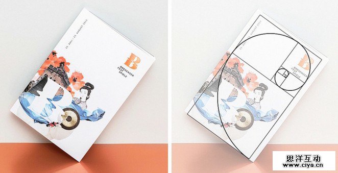 Moodley 设计工作室为Bregenzer Festspiele 艺术节设计了海报、应用、节目单和大量的品牌标识。节目单的整体设计采用了拼贴的方式,有大量的留白,而其中各种元素的设计比例、位置和留白就是借助黄金螺旋来布置的。