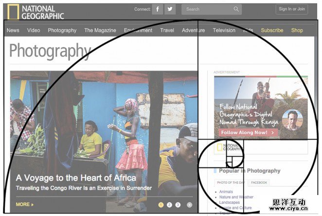 对于网页内容而言,黄金螺旋的轨迹同样可以起到重要的作用。我们的视觉可以很自然地沿着黄金螺旋的轨迹运动,这也就是说这样设计网页布局会让访客更加自然地浏览内容。