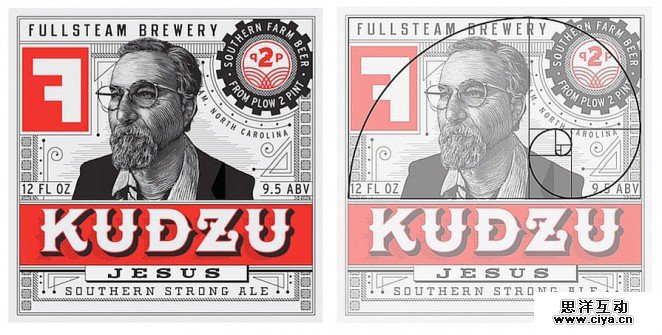 Helms 工作室 为Fullsteam 啤酒进行品牌设计的时候,也同样借助黄金螺旋来布局内容。