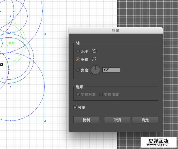 按COMMAND+G编组,鼠标右键,选择变换-对称。选择垂直并点击复制.