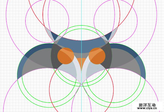 创建最终的三个圆(紫色):237 * 237像素,293 * 293像素和 117 * 117像素 ,如下图所示将其放置,黑色小圆圈显示仅供指导。