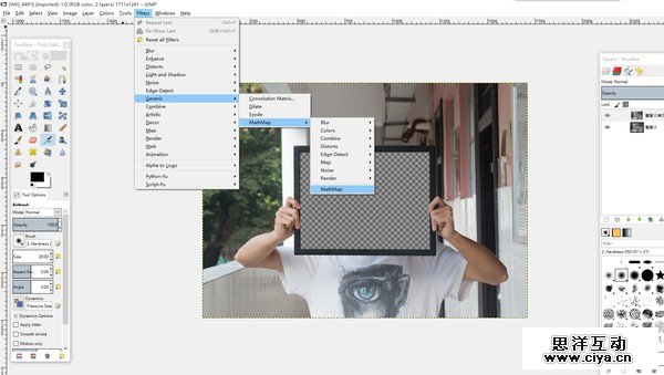 3.接下来进入 Filters>Generic>Mathmap>Mathmap,打开 Mathmap 插件(百度云下载:http://pan.baidu.com)