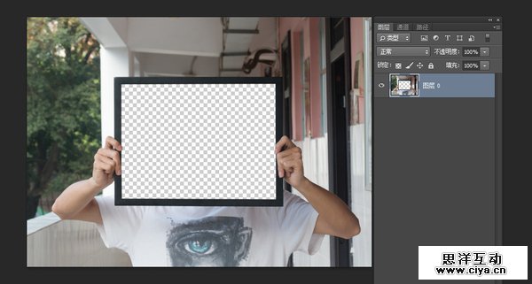 准备一张自己满意的照片,用选择工具把要做效果的地方扣掉,这里为了不产生形变,我把画面比例裁剪成了相框的比例。