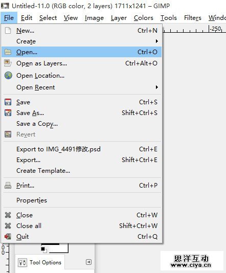 2. 打开GIMP,在菜单栏下打开制作好的PSD文件。