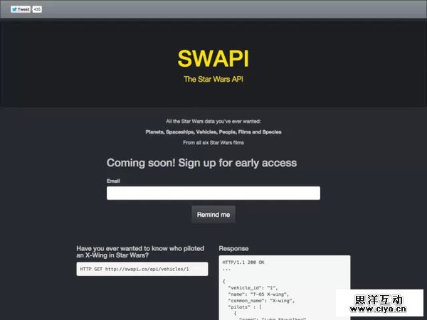 SWAPI是一个能够让你得到你所想要的所有《星球大战(Star Wars)》数据的应用界面。