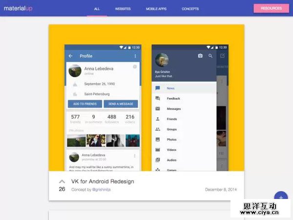 迎合谷歌的“材料设计(Material Design)”,Material Up提供了“材料设计”网页端、移动端和概念上的展示空间。