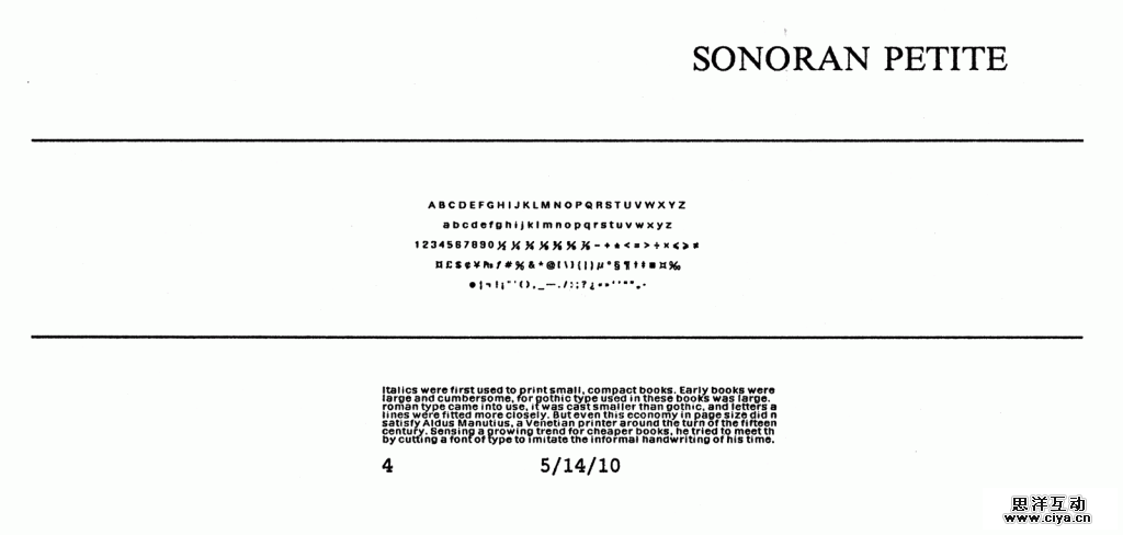 - 提供 Sonoran Serif、Sans Serif、Display、Petite 四套字体。